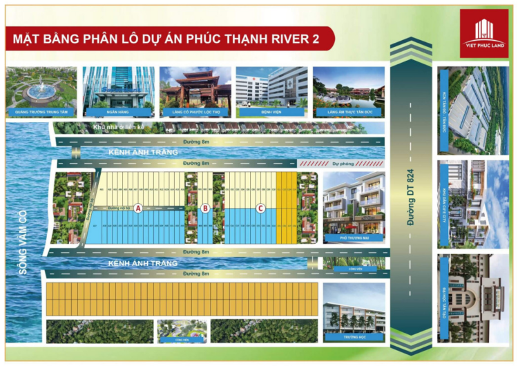 Tiện ích ngoại khu dự án Khu dân cư Phúc Thạnh River 2: Liền kề các cụm công nghiệp phát triển như khu công nghiệp Tân Đô, khu công nghiệp Hải Sơn, khu công nghiệp Hựu Thạnh.