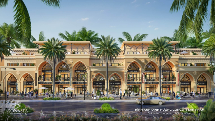 Nhà phố biển Dual – Shop Phân khu nhà phố Sonasea Silk Path có vị trí nằm tại khu vực trực diện Đại lộ Orchard rộng 24 m, được thiết kế xây dựng kết hợp kinh doanh trong cùng 1 sản phẩm, 2 mặt tiền, 2 không gian kinh doanh riêng biệt: